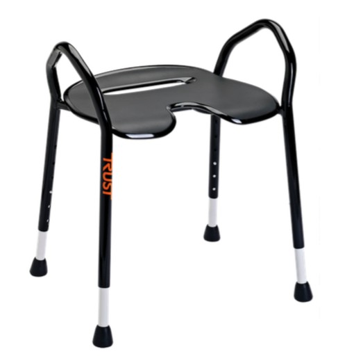 Badestolen er udstyret med to kraftige håndtag, som gør det nemt at sætte sig og så har sædet udskæring som letter intimvasken.
