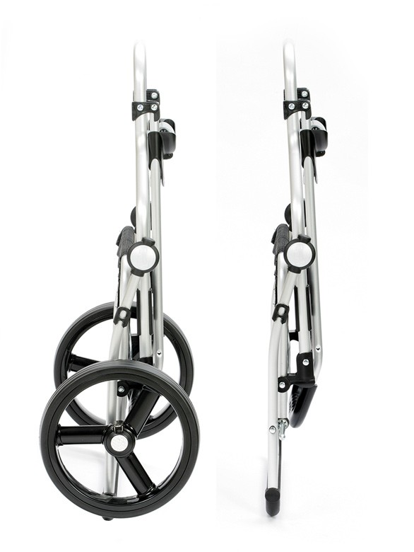 Det kraftige Royal stel er som nævnt fremstillet i aluminium, hvilket gør det ekstremt robust. Den bærende ramme i bunden foldes nemt ud og ind, så indkøbsvognen fylder minimalt, når den skal stuves af vejen for opbevaring.