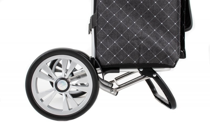 Alu Star Shopper, Tamo er forsynet med kraftige massive 20 cm. hjul, som sikrer en stabil kørsel på alle typer af underlag. Og gør den nem at køre med, selvom der er læs på.