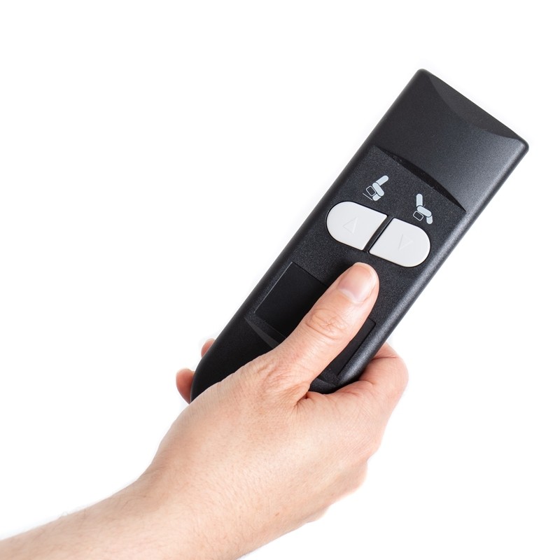 Alle stolens elektriske funktioner styres med en fjernbetjening, som er placeret på stolens højre side. Fjernbetjeningen er overskuelig og nem at bruge.