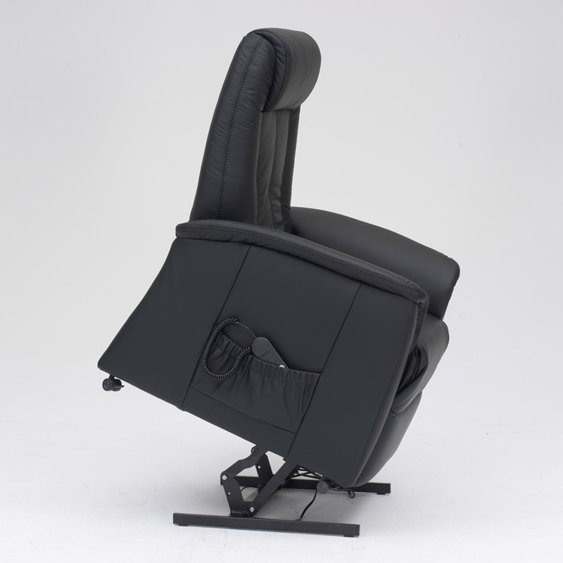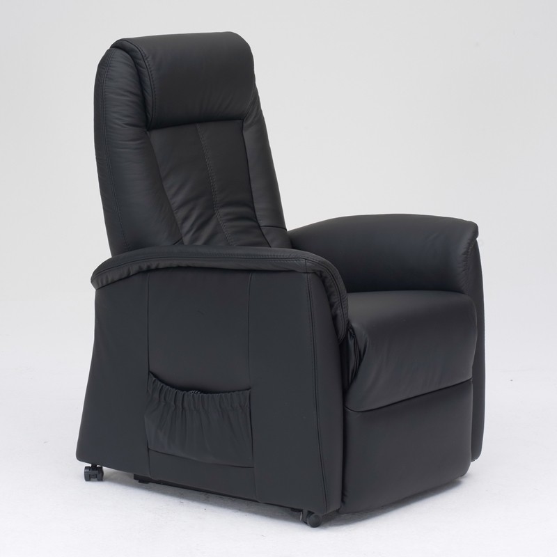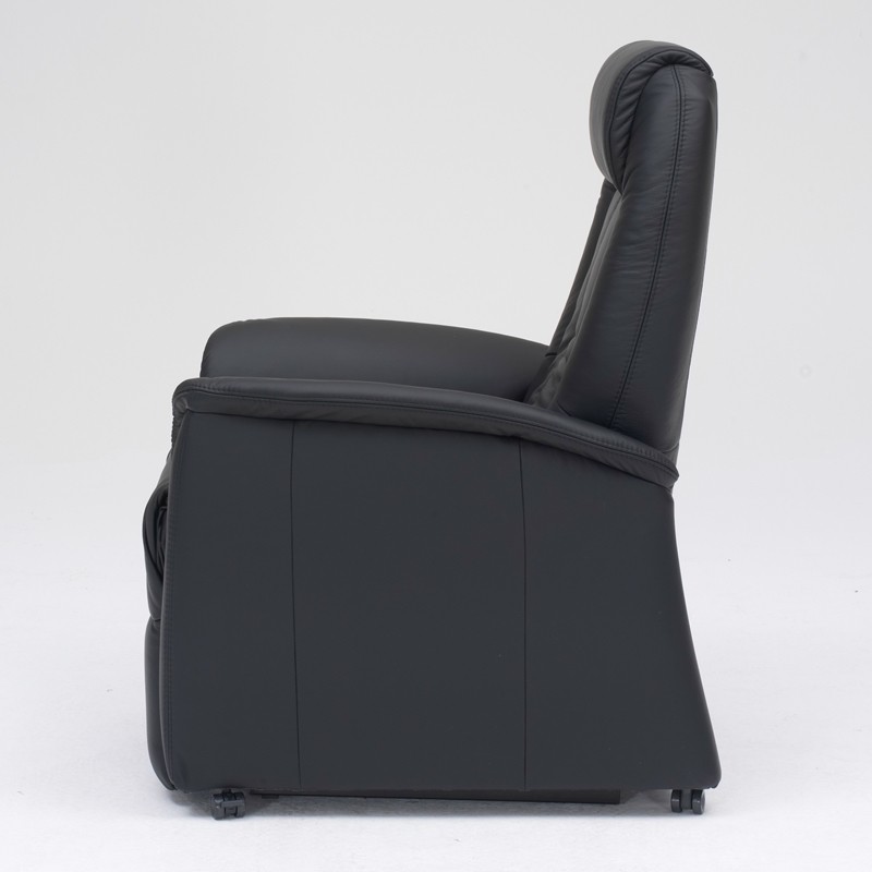 Himolla 9107XL løftestol godkendt op til 160-200 kilo med elektrisk regulering af ryglæn og fodstøtte. Fås i sort læder.
