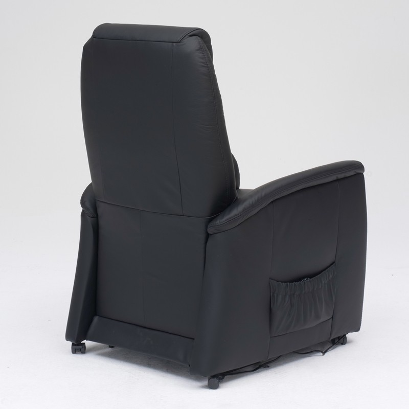 Løftestolen fås med sort læderpolstring, der er lavet af blødt, sortfarvet koskind. Dette læder er af høj kvalitet og nemt at rengøre med en fugtig klud. Sort læderpolstring er et klassisk valg, der altid vil se stilfuldt ud i mange år frem.