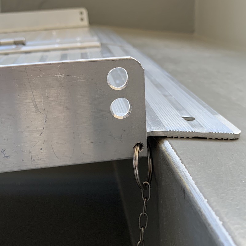 Vores enkeltfoldede kuffertramper er som nævnt fremstillet i aluminium med skridsikker riflet overflade. Overfladen med de riflede lameller er en mere holdbar løsning i forhold til traditionel skridsikker belægning, som slides og med tiden bliver glad i overfladen.