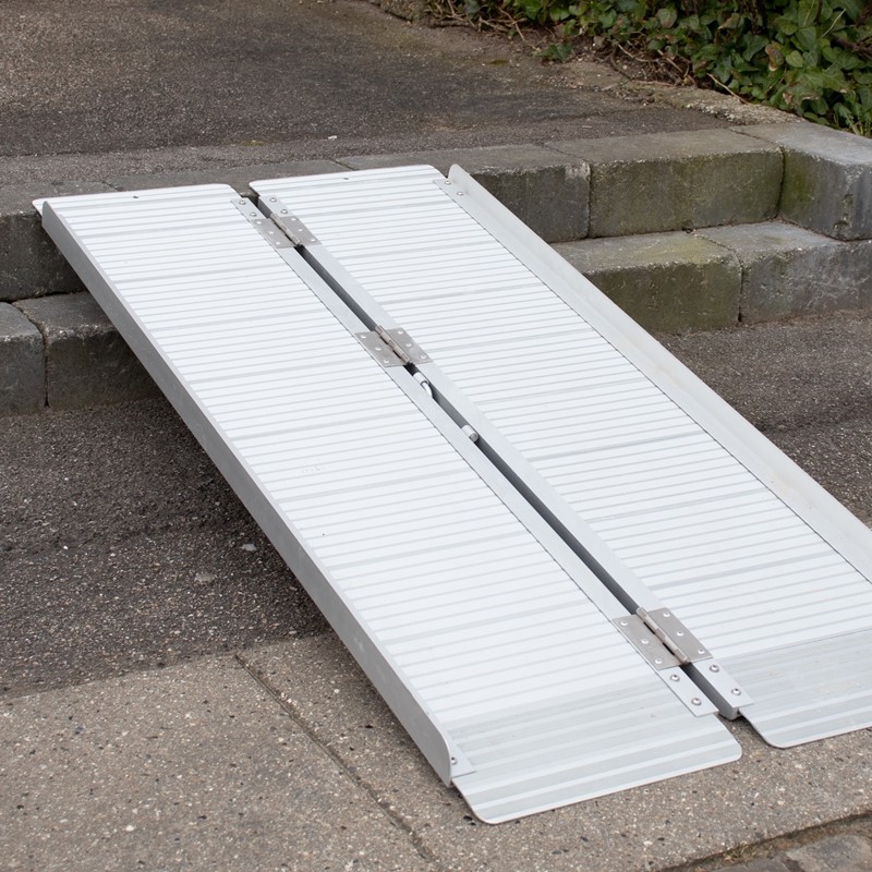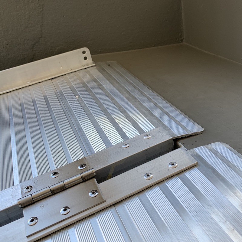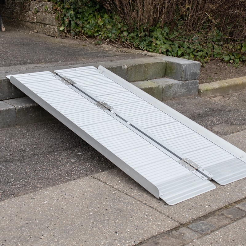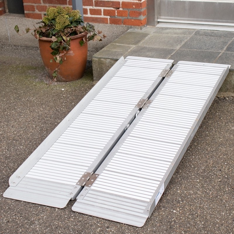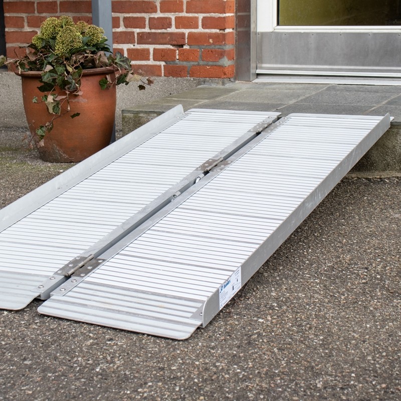 Billig kørestolsrampe, enkeltfoldet kuffertrampe, fremstillet i aluminium. Fås i længder fra 45-180 cm.